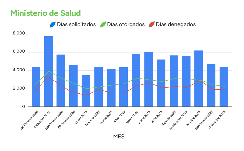 Los datos confirman un cambio cultural positivo. Si se analiza octubre —el mes de mayor demanda histórica en ambos años— se observa una caída de 14.031 días solicitados en 2025 respecto a 2024. Esta reducción drástica confirma que la fiscalización desactiva los pedidos especulativos o sin justificación clínica.